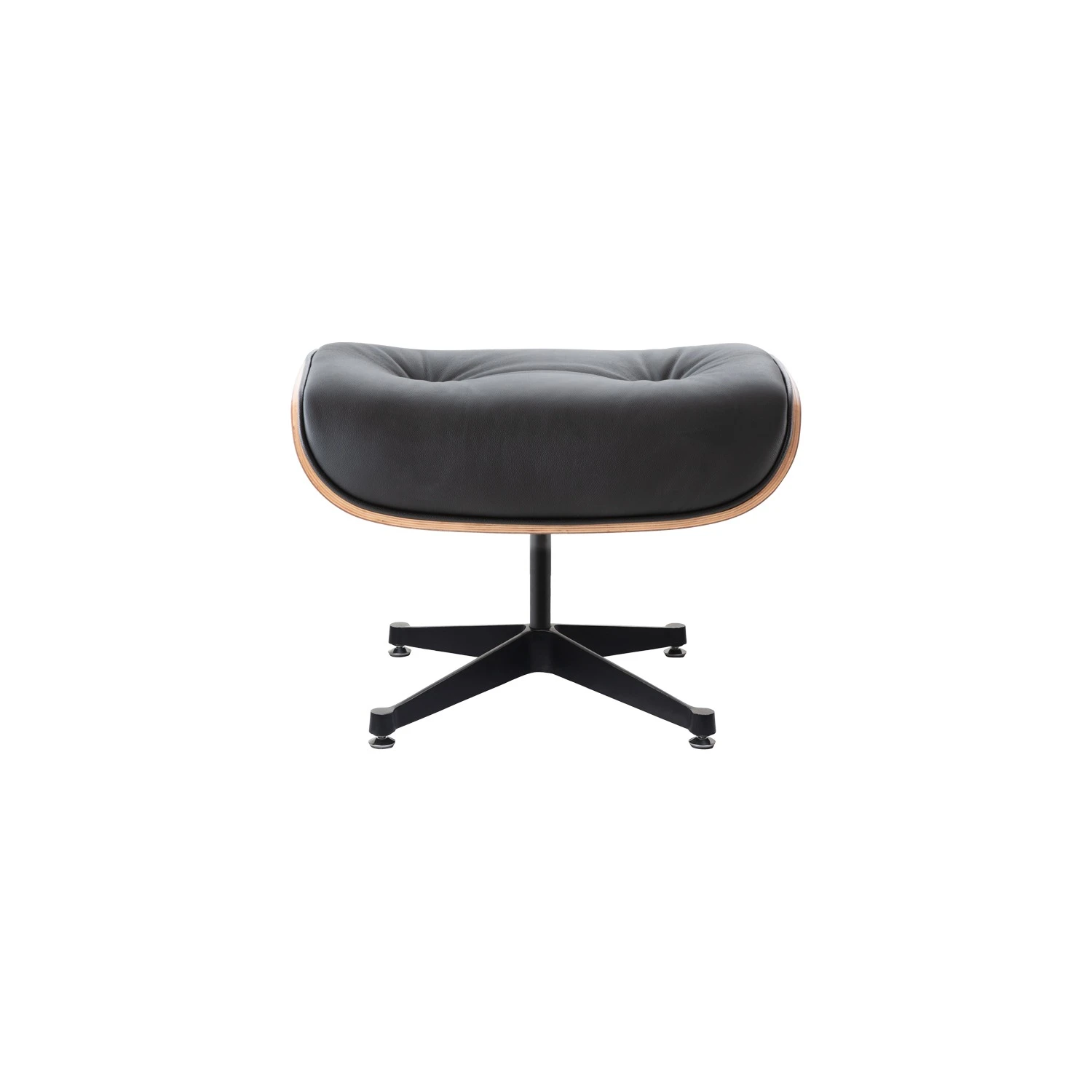 Walnut veneer is the most traditional choice for the Eames Ottoman, offering rich, medium-brown tones with natural grain that brings classic mid-century warmth. Paired with black Italian aniline leather, the combination creates a sophisticated, versatile presence that suits both residential and professional interiors. The walnut’s natural character develops subtle depth over time with exposure to light.