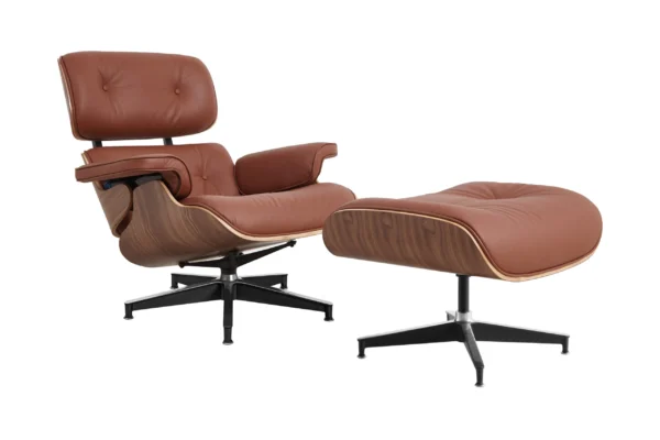 The Eames Lounge Chair and Ottoman, designed by Charles and Ray Eames in 1956, is widely regarded as one of the most important furniture designs of the 20th century. Conceived as a modern interpretation of the traditional English club chair, it was meant to have “the warm, receptive look of a well-used first baseman’s mitt.” This classic walnut edition with tan brown leather represents the most traditional expression of the design—a combination that has defined mid-century modern interiors for nearly seven decades. From luxury residences to corporate boardrooms to countless film and television productions, the Eames Lounge Chair remains an enduring symbol of comfort and refined design. This replica honors that legacy with careful attention to materials, proportions, and construction.
